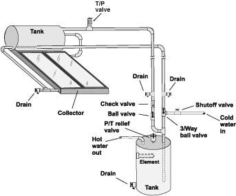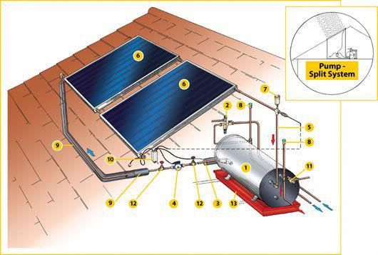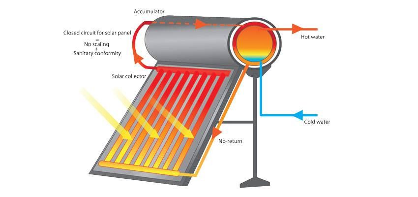 How solar water heater systems work a typical household solar geyser system consists of a solar panel with a heat transfer fluid flowing through it to transport the heat energy collected to somewhere useful usually a hot water tank or household radiator. Indirect systems use a specially designed type of anti freeze which circulates through solar panels to heat the water which then flows to a. On days where it rains or there is minimal sun they have an electrical backup to ensure you have hot water. Solar geysers can be divided into two primary types.